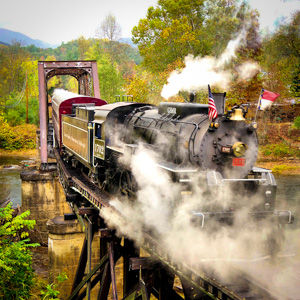 Hop on board for a scenic train ride you won’t forget! Cruise along the Nantahala and Tuckasegee Rivers, climb over mountains, coast through valleys, and even roll through tunnels. Departing right from Bryson City, you’ve got your pick of train adventures—whether you’re in the mood for a laid-back ride or one of their special event trips. Think beer, wine, or even the Polar Express for a little extra holiday magic. Whatever you choose, it's a ride that’s as fun as it is fabulous!